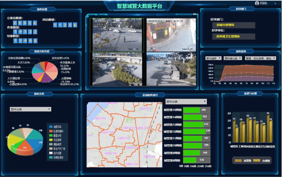 构建“发现问题人人有责,处置案件专人专责,处理效率人人监督”,实现“一格多员,一员多责”制网格化管理;融合城管队员、社区工作人员、志愿者、全科社工等综合网格人员,可实时查看工作人员上班时间、精确定位上班位置、全程记录巡查轨迹、查看案件处置情况、超出网格范围及长时间停留报警。
