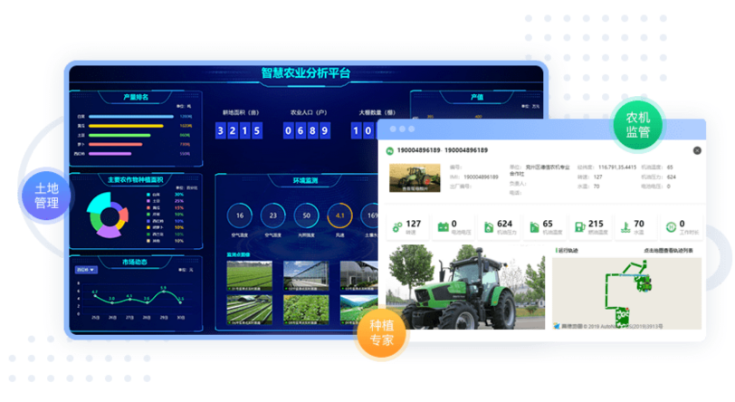 农业智能化:实现对乡村管理组织内的农业机械设备进行平台编码及信息的登记,便于对农业机械的管理和农忙时节机械的分配保证农产品的抢收, 同时还可以方便相关部门对农业机械设施的补助发放和跟踪,保证相关款项的实时到位和信息的公开。