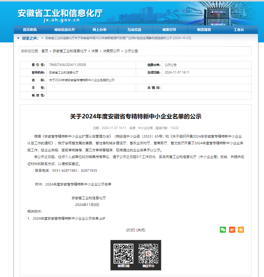 安徽千米信息科技有限公司荣获2024年度安徽省“专精特新”中小企业称号