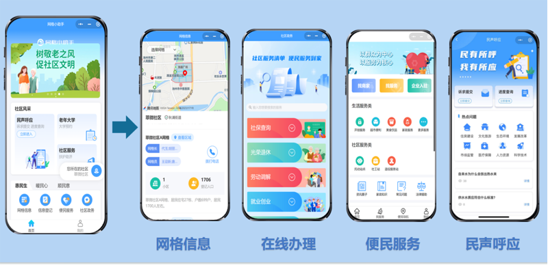 目前社区所在的街道已率先在全市上线网格小助手平台,平台通过小程序的系统,连接居民端和网格员端,居民可以通过小助手实现“民生呼应的问题上报”“网格信息查询”“老年大学活动”“志愿服务”等,可以实时同网格员无缝对接,咨询、上报、投诉相关身边的问题和难题;网格员可以通过“网格员端”实现“网格走访”“活动招募”“事件处置”“党建+帮扶”“信息上报”等网格内的工作。